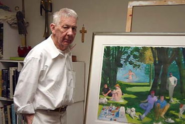 1920 – The abstract expressionist artist Paul John Wonner was born on this date (d. 2008). Born in Tucson, Arizona, Wonner received a B.A. in 1952, an M.A. in 1953, and an M.L.S. in 1955all from the University of California, Berkeley. He rose to prominence in the 1950s as an artist associated with the Bay Area Figurative Movement, along with his partner, Theophilus Brown (1919-2012), whom he met in 1952 while attending graduate school. ![]() Artist and Model with Red Robe (Click for larger) In 1956, Wonner started painting a series of dreamlike male bathers and boys with bouquets. In 1962, he began teaching at the University of California, Los Angeles. By the end of the 1960s, he had abandoned his loose figurative style and focused exclusively on still lifes in a hyperrealist style. Wonner died April 23, 2008 in San Francisco, California.