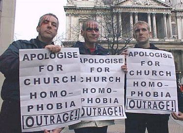 1991 – OutRage held a zap of the Church of England in response to a press release condemning homosexuality. If you are unfamiliar with the term, a zap was a raucous public demonstration, popularized by the early gay liberation group Gay Activists Alliance, designed to embarrass a public figure or celebrity while calling the attention of both gays and straights to issues of LGBT rights.