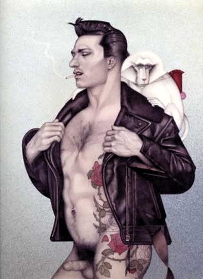 1950 – Mel Odom is an American artist who has created book covers for numerous novels, including a number of paperback editions of the novels of Patrick White, the Australian winner of the Nobel Prize for Literature, and several books by fantasy author Guy Gavriel Kay such as The Fionavar Tapestry trilogy, Tigana, A Song for Arbonne, and The Lions of Al-Rassan. Dreamer, a collection of his work, with an introduction by Edmund White, was published by Penguin Books in 1984. Odom is also the designer of the Gene Marshall collectible fashion doll. Odom was born in Richmond, Virginia, USA, and grew up in Ahoskie, North Carolina, where his parents encouraged his interests in drawing and in dolls. He majored in fashion illustration at Virginia Commonwealth University and then attended Leeds Polytechnic Institute of Art and Design in England for graduate work before moving to New York City in 1975. ![]() "Hard Stuff" (Click for larger) His Art Deco-like style established him as a commercial artist, at first via erotic illustrations for sexually oriented magazines such as Blueboy, Viva, and Playboy, the last of which named him their "Illustrator of the Year" in 1980. In the same year, he provided the cover art for Edmund White's novel Nocturnes for the King of Naples. ![]() "Mouth to Mouth" for Blueboy Magazine (Click for larger) During the 1980s, his work covered many commercial media. He created album covers for CBS Records and book covers for numerous other novels, usually in the genres of fantasy, mystery, or horror. He provided illustrations for the science/science-fiction magazine OMNI and (in 1989) a front cover for Time magazine. In 1990, Odom proposed to design the cosmetic facepaint for Mdvanii, a 25 cm limited-edition collector's fashion doll. The experience renewed his childhood interest in dolls and led him to create a doll of his own, the 15.5" Gene Marshall. Gene Marshall's appearance, wardrobes, and history are modelled on the glamour of Hollywood's golden age from the 1920s through 1950s. The doll made its commercial debut at the 1995 Toy Fair and was an immediate success, creating a wider market for large, fully articulated collector's fashion dolls in contrast to the slightly smaller and less flexible Barbie doll. Since then, Odom has largely concentrated his professional pursuits on the Gene Marshall doll, regularly modifying her design to create new variations and creating similar companion dolls to share her world, such as Gene's "co-stars" Madra Lord, Violet Waters, and Trent Osborn. Odom continues to attend doll collectors' conventions to make personal appearances and buy dolls for his own collection, as well as to support charitable causes. Of his early friends in the art world, he estimates that two-thirds of them died of AIDS in the 1980s before the awareness and treatment of the disease became better known. At a 1997 doll convention entirely devoted to Gene Marshall, a charity auction of uniquely modified Gene dolls raised more than $30,000 for Gay Men's Health Crisis, an AIDS service organization.