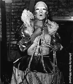 1945 – An influential figure in experimental theater, writer and drag performer Ethyl Eichelberger (d.1990) is most remembered for his repertoire of self-penned solo plays based on the lives of the great women of history, literature, and myth. He was born James Roy Eichelberger in Pekin, Illinois. He starred in many high school plays and attended Knox College in Galesburg, Illinois, where he also performed in plays, including the title roles in Oedipus Rex and Hamlet his freshman year. In his sophomore year, he transferred to the American Academy of Dramatic Arts in New York City. After graduating in 1967, Eichelberger began to act at the Trinity Repertory Company in Providence, Rhode Island under the direction of Adrian Hall. After working as the troupe's lead character actor for seven years, he moved back to New York City, changed his name to Ethyl, and became a member of Charles Ludlam's Ridiculous Theatrical Company. There he acted and designed wigs. Ludlam, a major influence on his theatrical vision, encouraged him to write his own plays. From 1972 until his death in 1990, Eichelberger wrote and performed in nearly forty plays. Most of these works are solo plays written in free-form verse. In them, he played a range of grand dames from Jocasta, Medea, and Klytemnestra to Lola Montez, Nefertiti, and Carlotta, Empress of Mexico. He won an Obie Award in 1982 for Lucrezia Borgia. Eichelberger's plays revel in a kind of poly-literacy that mixes classical references with pop culture. They frequently include such attractions as accordion-accompanied songs, fire eating, cartwheels, and splits. They are preeminently plays of strong women who survive. The plays offer sympathetic if screwball portraits of their title subjects. The plays anachronistically equate and parallel Eichelberger's own experiences as a gay man and artist with the famous subjects. In his biographical play about the eighteenth dynasty Egyptian monarch Nefertiti, for example, he writes the double edged lines: Eichelberger took productions of his plays on tour to such far away places as Australia and Europe. In a volatile artistic and political period, bracketed by disco and AIDS, Eichelberger's high octane performances earned his plays a devoted following. Even today, long after his death, the plays remain in performance by theater artists. Standing a gangly six foot, two inches tall before donning his trademark stiletto heels and skyscraper wigs, Eichelberger was an imposing figure. His stage divas sported tremendous jewelry and a version of gender fuck drag that encouraged his audience to see the performer underneath the costume. His full back was tattooed with a portrait of himself in drag as an angel and he often wore backless gowns to draw attention to the tatoo. His performances were scripted, but they were also highly improvisational. Eichelberger also enjoyed a successful commercial acting career in the late 1980s. He appeared on Broadway in The Comedy of Errors with The Flying Karamazov Brothers and as the Ballad Singer in 3 Penny Opera with Sting, as well as on HBO's children's television series Encyclopedia. Larger than life, flamboyant, and politically outspoken on stage, Eichelberger was a deeply private individual. Reacting badly to the only AIDS medications available to him in 1990, he committed suicide on August 12 of that year. Only after his death did most people learn that he had been HIV-positive for several years.