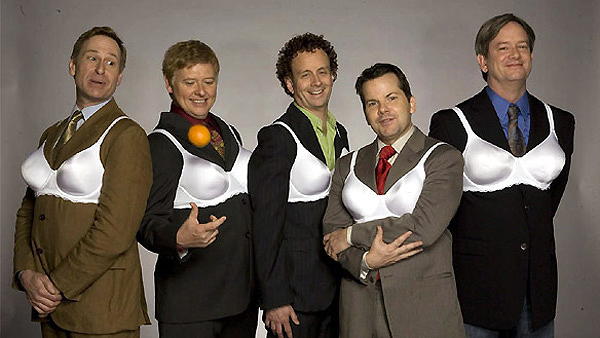 The Kids in the Hall comedy group formed in 1984, consisting of comedians Dave Foley, Kevin McDonald, Bruce McCulloch, Mark McKinney, and Scott Thompson. Their eponymous television show ran from 1988 to 1994 on CBC in Canada, and 1989 to 1995 on CBS and HBO in the United States. The name of the group came from Sid Caesar, who, if a joke didn't go over, or played worse than expected, would attribute it to "the kids in the hall," referring to a group of young writers hanging around the studio. The show's sketches were reminiscent of Monty Python's Flying Circus: often quirky or surreal, frequently utilizing drag, with very few celebrity impressions or pop culture parodies; the only recurring celebrity impression was of Queen Elizabeth II, played by Thompson. A recurring character was Mr. Tyzik, played by McKinney, who pretended to crush people's heads from a distance with his fingers. McKinney also played Chicken Lady, a shrill-voiced sexually excitable human-chicken hybrid. Many of the sketches featured gay characters and themes; most of these sketches were written by and starred Scott Thompson, who is openly gay. The show was also notable for reflecting and dealing with the youth subculture of its times, and for incisive sketches about big business and family units.