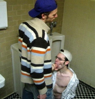 by Mark James ![]() I was standing at the urinal in the convenience store restroom. The cute guy I had noticed in the store came in, locked the door, and took the urinal next to me. I unbuttoned the top button of my jeans and they dropped to my ankles. I looked over at his cock and saw that he was pissing a golden steam. I wished he was pissing on me. He finished pissing and started stroking his cock. It grew up to be about six inches long and very wide with a bulbous crown. I licked my lips as I stroked my own cock which had grown fully erect. I stepped back a step, turned sideways toward him and stroked my cock. That really turned him off. He backed up and worked his erect cock back into his jeans and zipped up. I thought I had really fucked this up, so I dropped to my knees, reached out, stroked the bulge in his jeans and asked, "Can I suck you off?" "Yeah, cocksucker, you can suck me off," he snarled. "Just don't expect anything from me." He undid his jeans, flipped his cock and balls out, and folded the elastic of his briefs underneath his balls. I immediately sucked on it, because I didn't want him to change his mind. It was so wide I knew – even though it wasn't very long – that I was not going to be able to get but half its length in my mouth. So I sucked on what I could take and wrapped my hand around his shaft and jacked on the part I couldn't take down my throat. He wasn't complaining, though. I was a pretty good cocksucker and he obviously liked my tongue action on his crown, because he kept moaning and stroking his stomach as I serviced his cock. He grabbed my head and held it in place as he fucked his cock in and out of my mouth. "Oh, fuck, man; that feels so good. Let's see how much you can take." He forced his cock further and further into my mouth with each stroke until finally I gagged. "Shit, man, that's pretty good; you almost took it all. Now just hold still while I fill your mouth with my cum." He fucked my mouth again, but didn't force it so far. He did it more rapidly, yelled, "Shit," and blew his load. I let it fill up my mouth and then swallowed as I savored its taste, enjoying the feeling as it flowed down my throat. He pulled out, walked to the sink, washed and dried his cock ad left. I pulled up my pants and put away my cock, saving my load for somebody else I might yet meet.