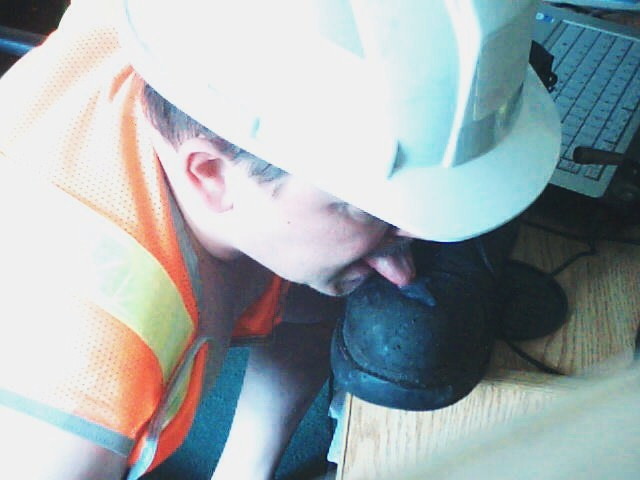 Licking cum off boot